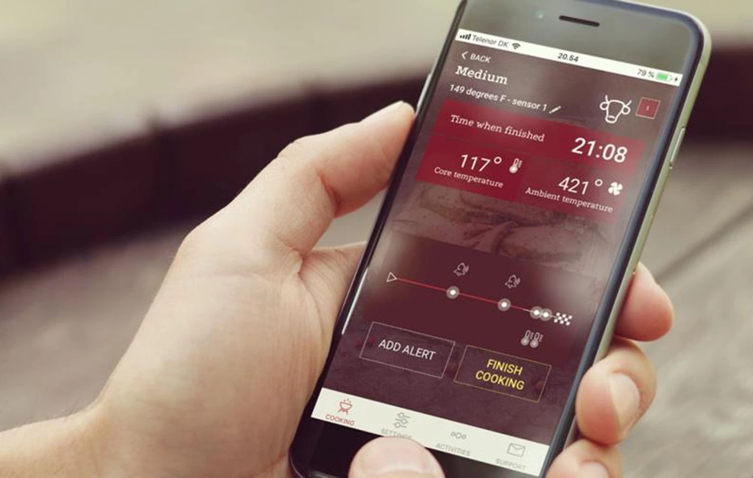 Neben dem Grill stehen und warten, bis das Grillgut die richtige Temperatur erreicht hat, gehört nun dank des intelligenten Thermometers der Vergangenheit an. Setzen Sie sich entspannt zu Ihren Gästen und lassen den Grill seine Arbeit tun während Sie die Temperatur Ihrer Speisen ganz einfach über Ihr Smartphone kontrollieren können.