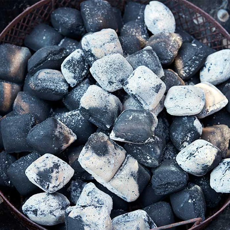 Normale Holzkohle bietet hier kaum einen Vergleich, denn die Brenndauer der Kokosnusskohle ist ca. 3x so lange, bei höheren Temperaturen.