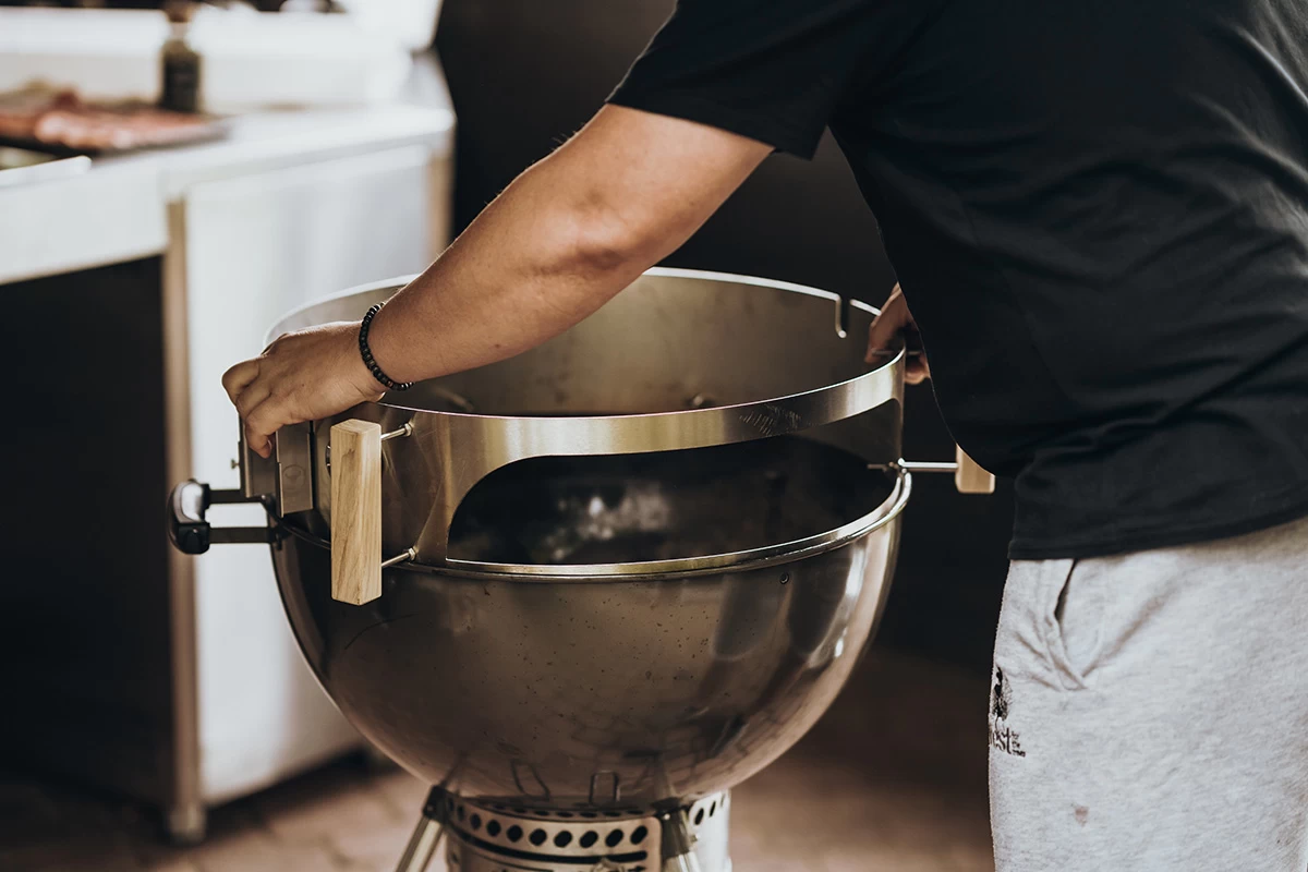 Der Moesta Pizzaring verwandelt jeden Kugelgrill in einen professionellen Pizzaofen. Dazu wird der Ring mit den praktischen Griffen einfach auf den Kessel des Kugelgrills aufgesetzt und der Deckel wieder darauf gelegt.