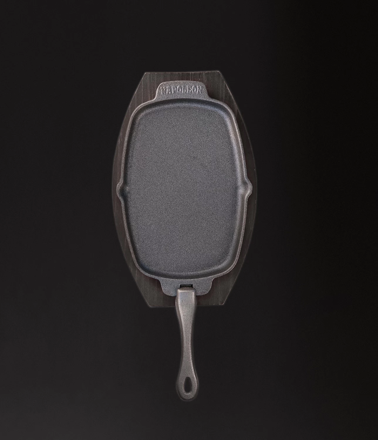 1x Napoleon Gusseiserne Pfanne mit Holz Untersetzer