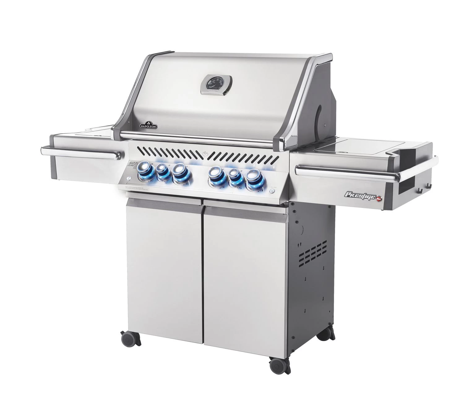 Die 4 Edelstahlbrenner versprechen extrem hohe Temperaturen und eine perfekte Hitzeverteilung auf der Grillfläche. Die Brenner lassen sich exakt steuern, so dass Sie Ihre Speisen auf den Punkt genau garen können. Zum scharf Anbraten verfügt der Prestige Pro 500 über einen Infrarot Seitenbrenner. Diese Sizzle Zone verspricht Temperaturen von bis zu 980°C.