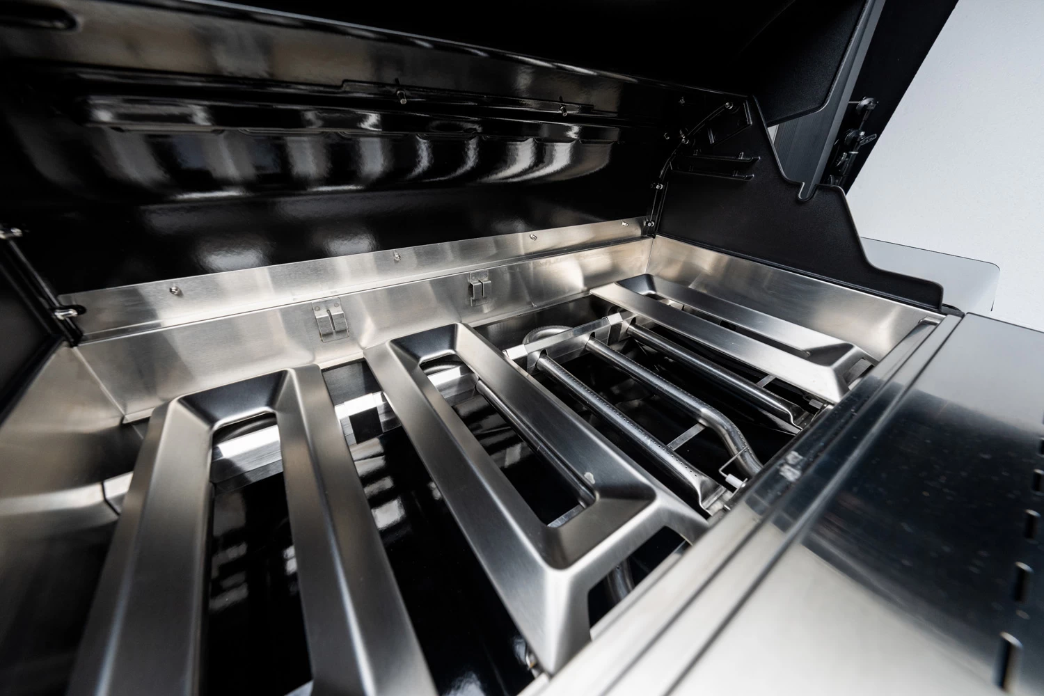 - 4 doppelte Edelstahlbrenner (DGS Twin Burner) mit massiven Flammenabdeckungen (DGS Protection Bars)
