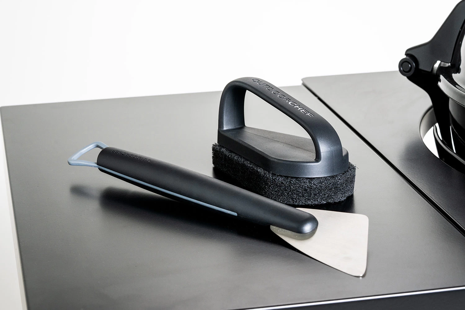 Der Outdoorchef Trichter-Schaber ist das perfekte Werkzeug zur Reinigung der Easy Flip Trichter. Mit der flexiblen Klinge lassen sich eingebrannte Rückstände schnell und einfach entfernen. In dem praktischen Reinigungsset ist zudem ein Schwamm enthalten, der die Trichter in neuem Glanz erstrahlen lässt.
