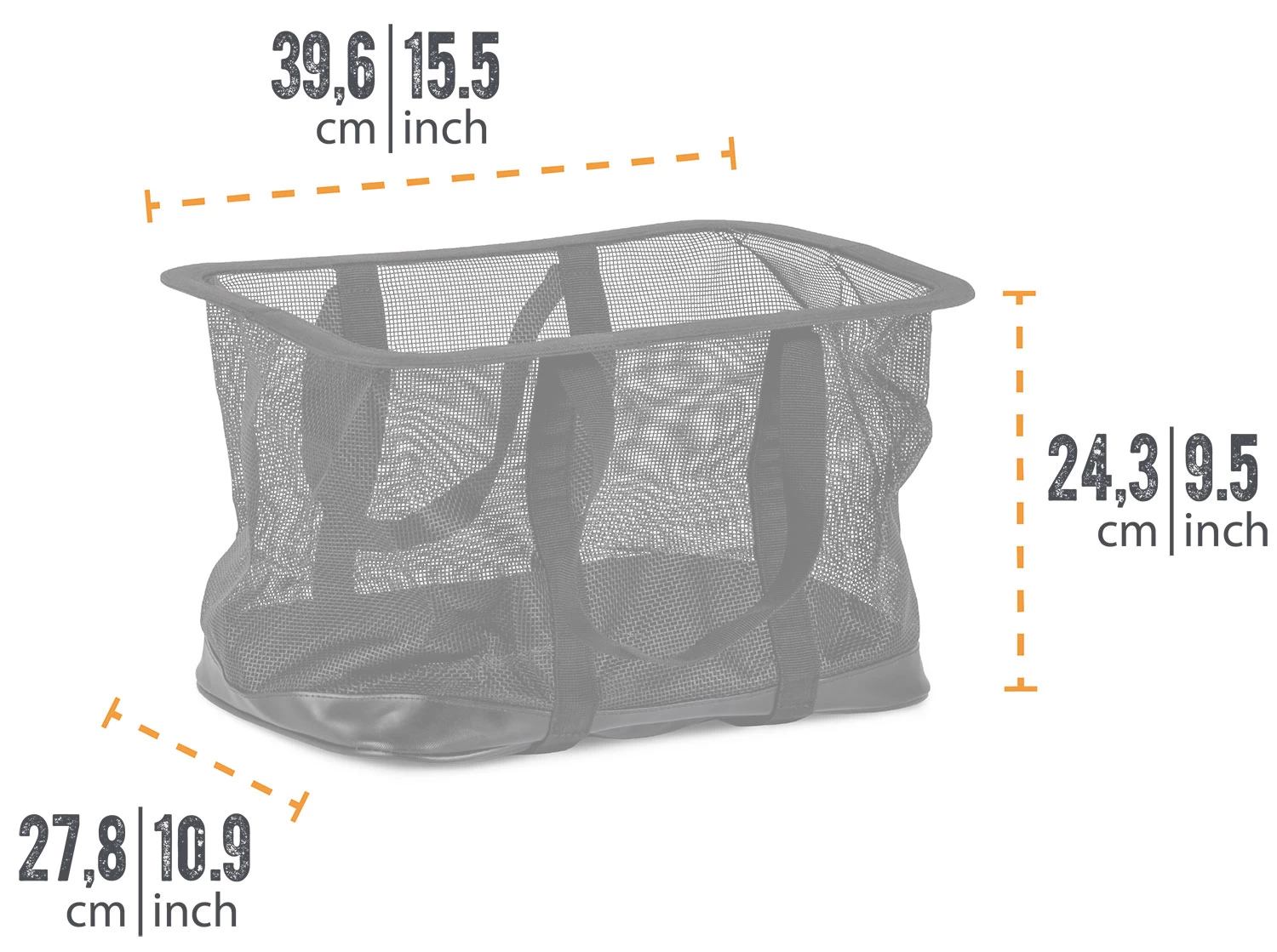 Der stabile Netzeinsatz ist die ideale Ergänzung zur Petromax 22 Liter Kühltasche. An den beiden Henkeln lässt sich der Einsatz samt der Lebensmittel bequem aus der Kühltasche herausnehmen, während das Schmelzwasser im Inneren verbleibt und dann einfach ausgegossen werden kann.