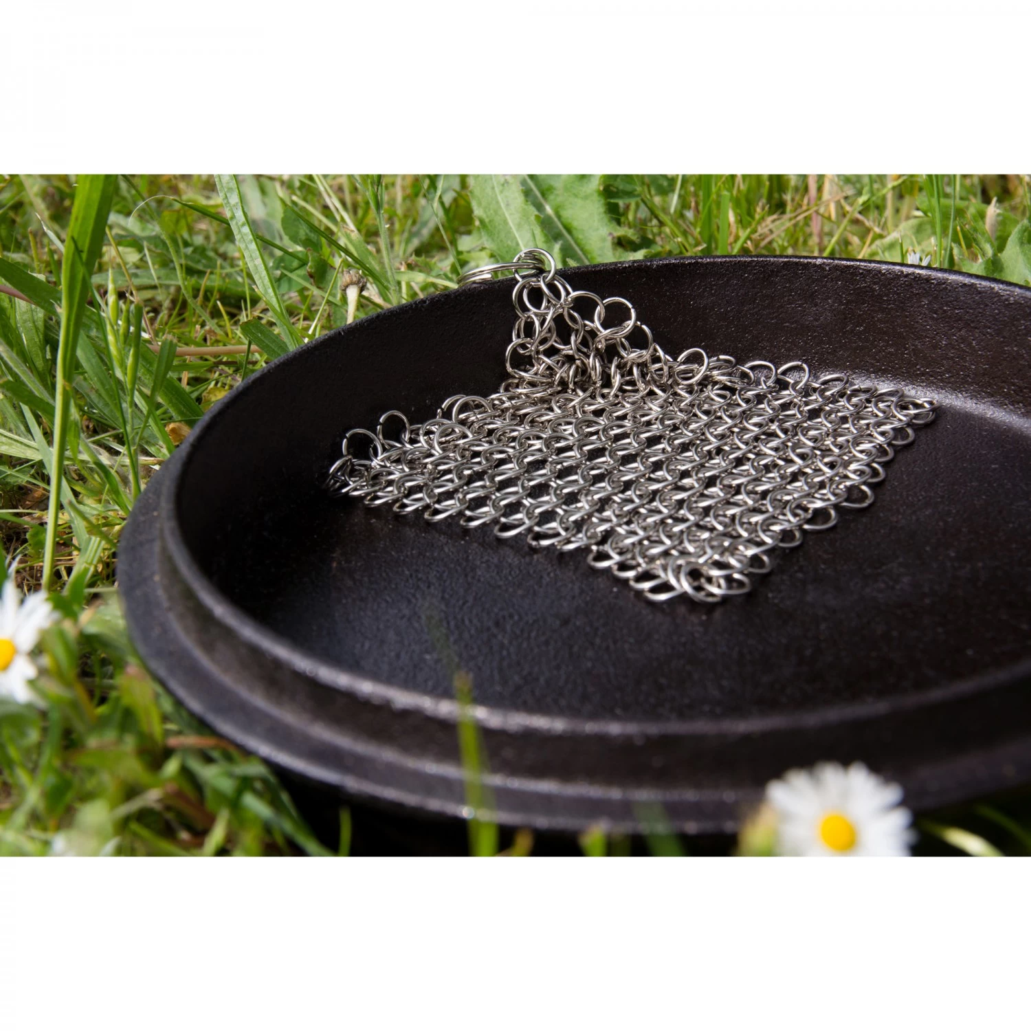 Seine Stärke spielt das robuste Edelstahlnetz beim Entfernen von eingetrockneten Speiseresten von Gusseisen, Schmiedeeisen und sogar Edelstahl aus. Egal ob Grillrost, Dutch Oven, oder Grillpfanne , der Ringreiniger entfernt Rückstände mühelos und rein mechanisch.