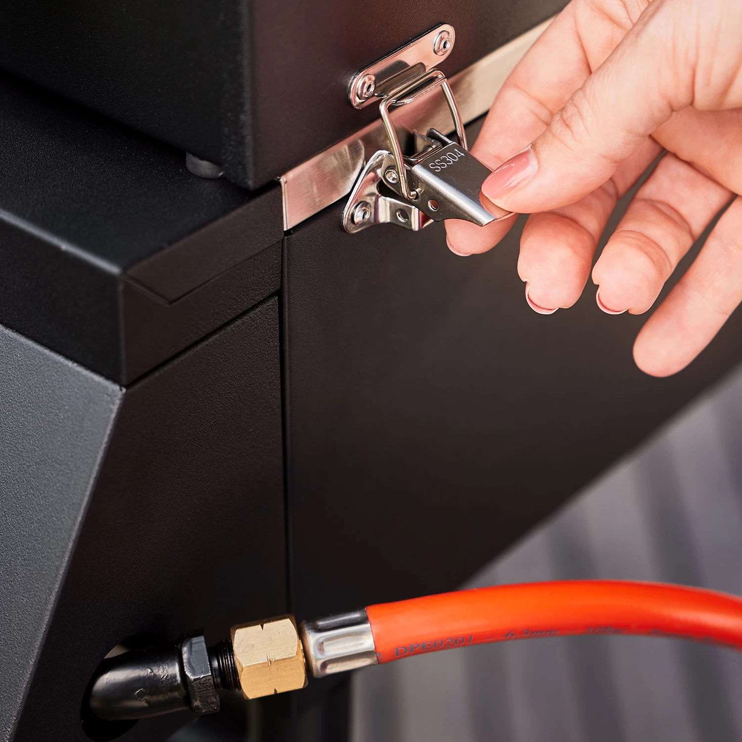Mithilfe der Halteklammern rechts und links lässt sich der Deckel fest fixieren und der Rösle Videro G2-P ganz einfach am Haltegriff transportieren. Vier hitzebeständige Gummifüße sorgen für einen sicheren Stand. Halteklammern wieder lösen und schon kann das Grillvergnügen losgehen.