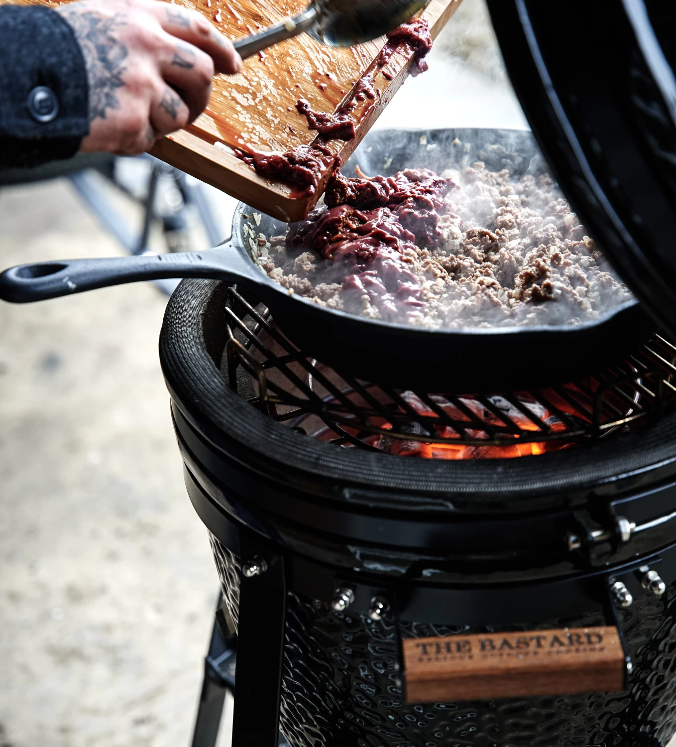 Die Bastard Frypan ist die perfekte Ergänzung zu Ihrem Bastard Kamadogrill. Die Gusseisenpfanne zeichnet sich durch ihre hohe Hitzebeständigkeit, eine hervorragende Hitzeleitfähigkeit und gleichmäßige Hitzeverteilung aus und ist universell für die verschiedensten Gerichte einsetzbar.