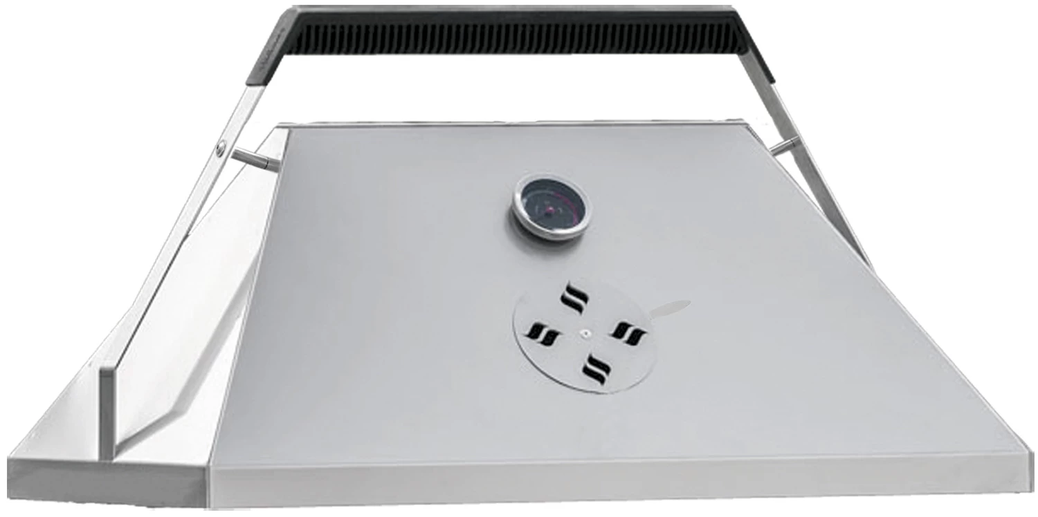 Neben einem Lüftungsschieber verfügt die Haube ein Thermometer bis 260 °C, mit dem Sie die Grilltemperatur bequem im Auge behalten können.
